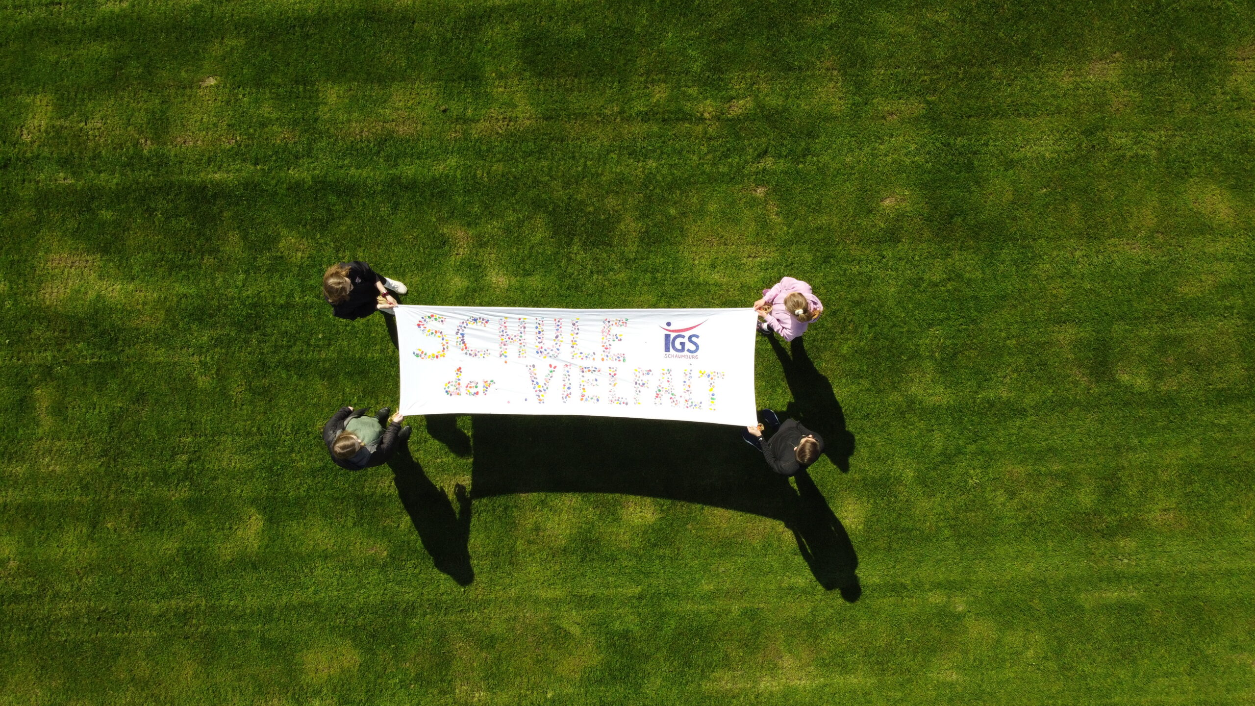 Am Freitag startete dann die Schulgemeinschaft einen Spendenlauf Run for help. Der Erlös geht dann in Anteilen an Organisationen, die sich für Vielfalt einsetzen wie Schlau e.V. Hannover, Schule ohne Rassismus – Schule mit Courage, die Ehemalige Synagoge Stadthagen. Während dessen wurde mit den Fingerabdrücken der Schüler*innen, Lehrer*innen und Mitarbeiter*innen ein Banner gestaltet.
